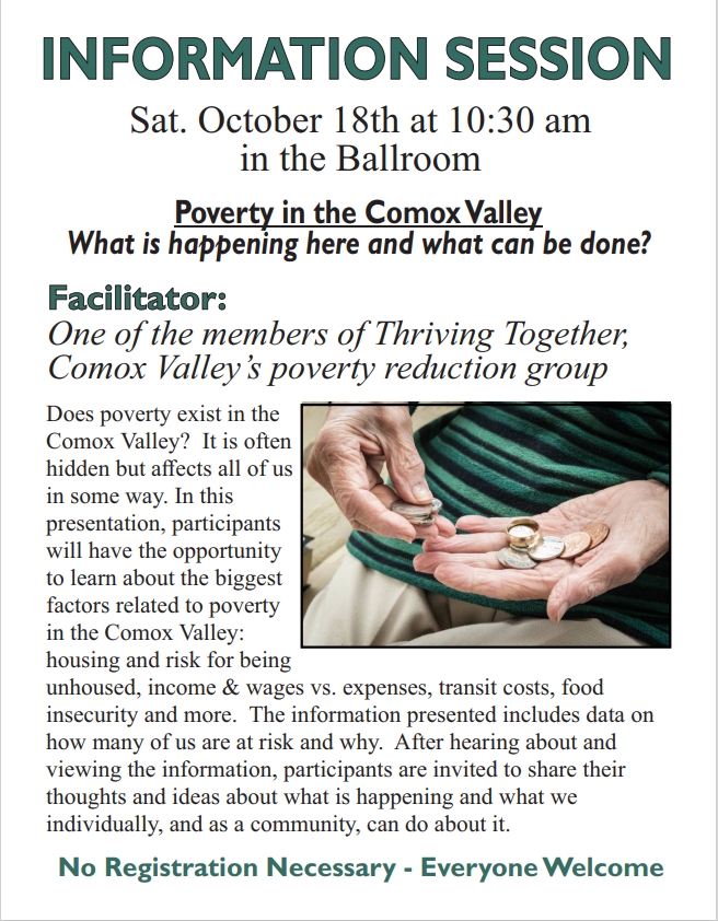- Evergreen Seniors: Courtenay Recreation Filberg Centre, Tel:(250) 338-1000 – 411 Anderton Ave., Courtenay